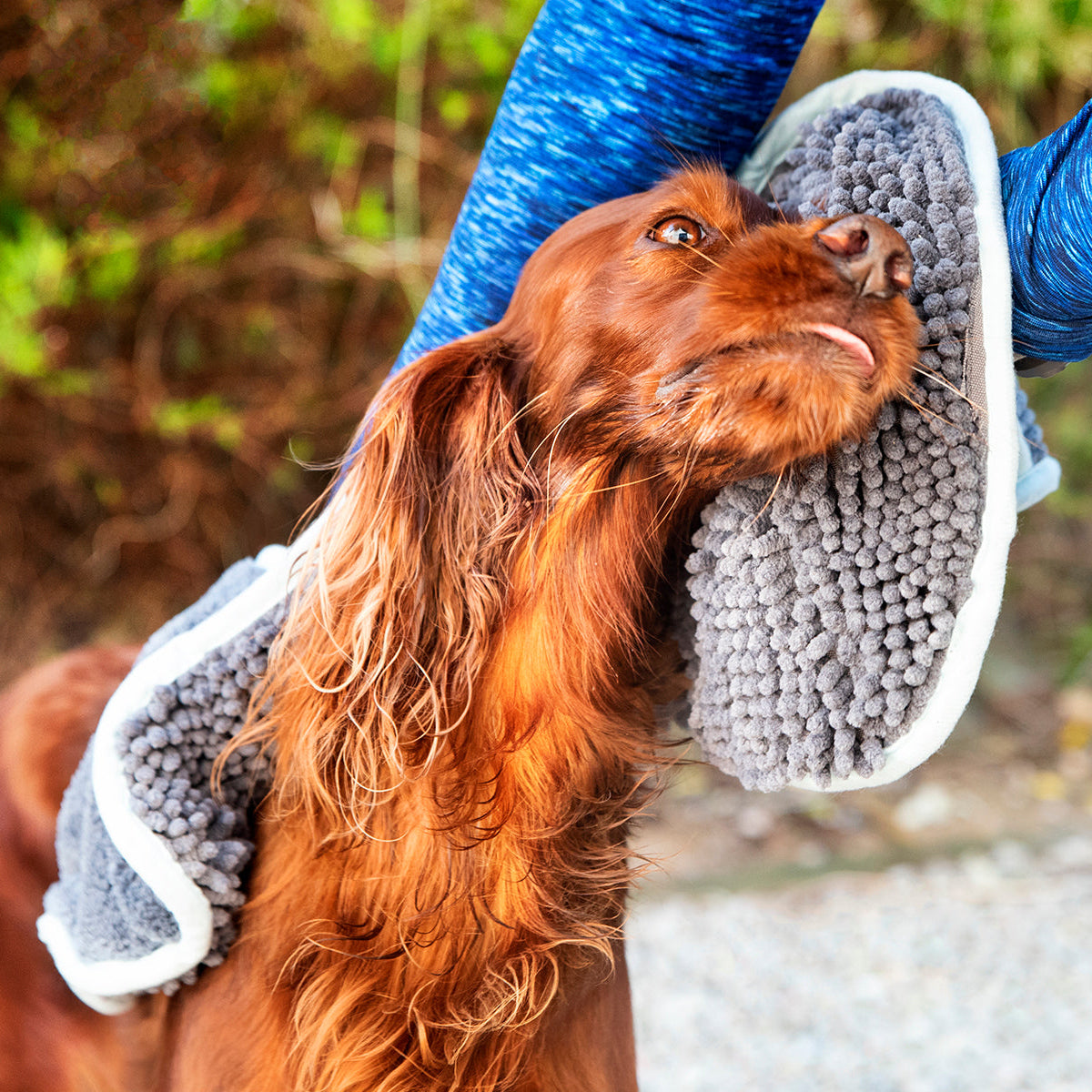 Keep your dog dry and clean with the Noodle Glove Towel, designed from 70% GRS recycled polyester. The advanced microfibre noodles absorb water and dirt efficiently, drying faster than standard towels whilst being gentle on your dog's coat. Perfect after muddy walks or outdoor play, this towel removes moisture without pulling hair, leaving a healthy shine.