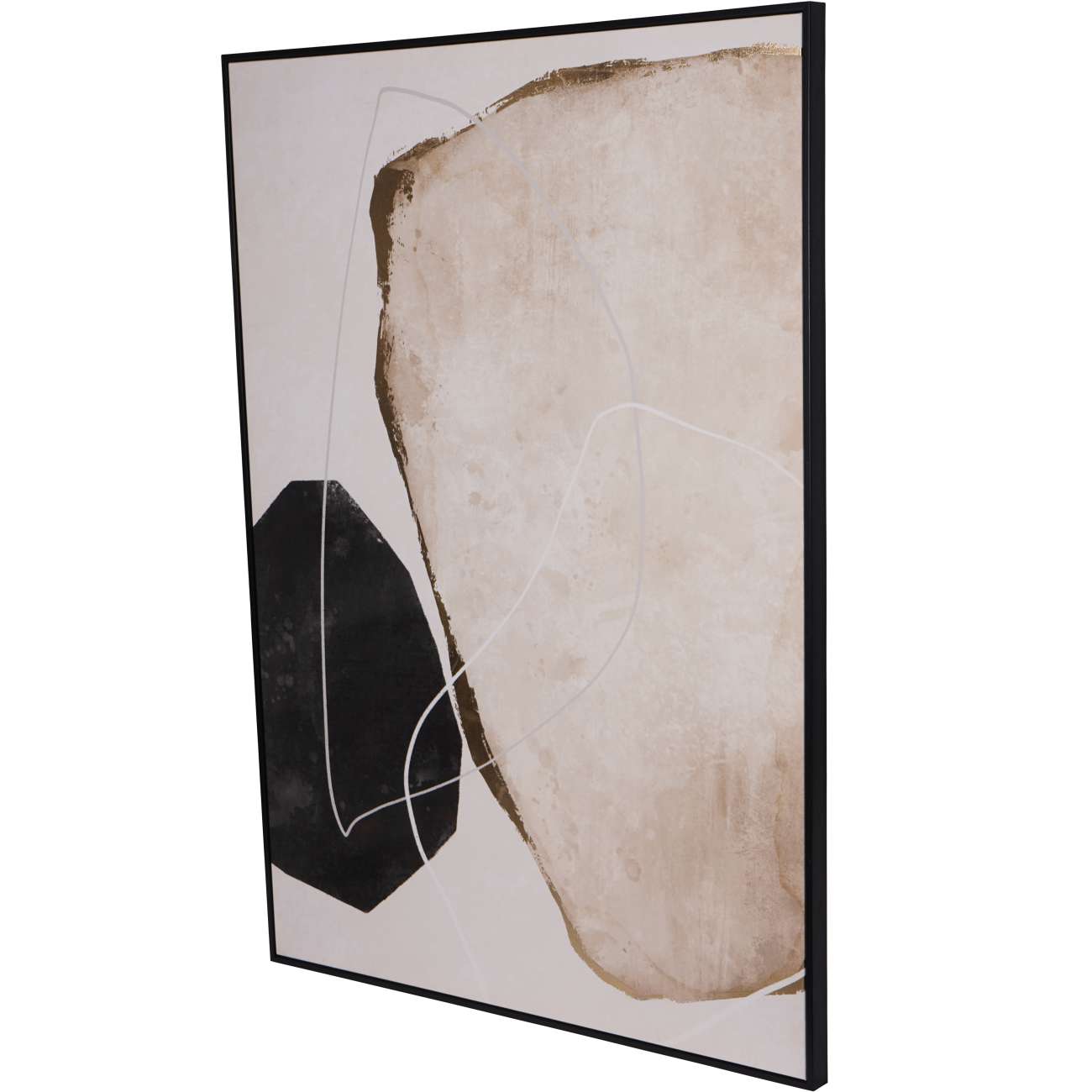 Enhance your rental space with this stylish wooden Framed Abstract Canvas Wall Art featuring geometric designs in black, white, and grey, highlighted by subtle gold foil accents.