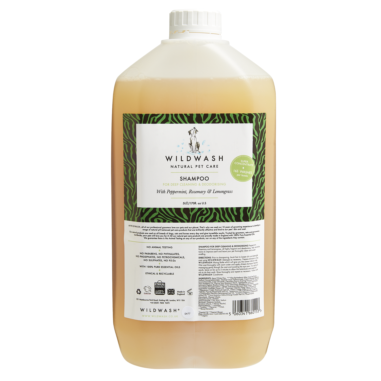 Prior to shampooing, brush hair to loosen dirt and detangle. Prepare shampoo using WildWash Mixing Bottle which will give you the correct dilution rate . Wet coat thoroughly with warm water and apply diluted shampoo liberally, massaging gently through the coat and avoiding the eye area. For optimum results, leave on for up to 5 minutes to allow the essential oils and botanicals to do their work. Rinse thoroughly and repeat as necessary.